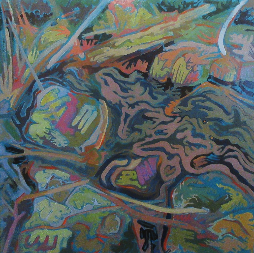 Blue Stream, Tangled Wood, acrylic on canvas, 36 x 48, Susan Tooke