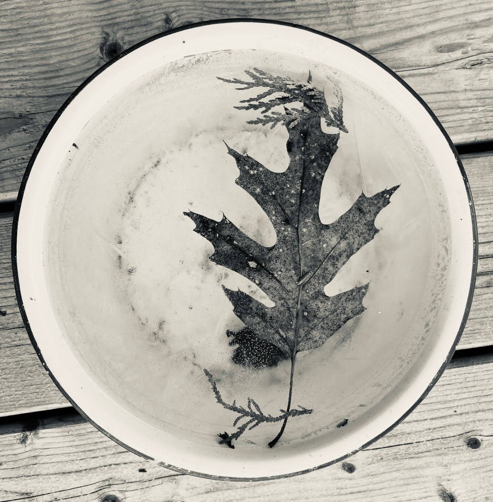 One morning she noticed an oak leaf frozen in her dog’s water bowl. Time Passages has a wonderful graphic and abstract quality of patterns in a thin layer of ice over water. Her eye is drawn to what melting snow reveals, to a seal skull in the grass, to tiny fragments of a disintegrating rock on the beach.