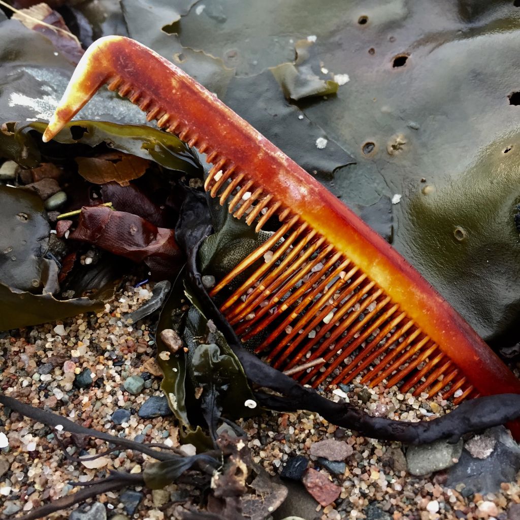 Tim Wilson’s photographs are at the intersection of people and nature: the interior of an abandoned house, a turquoise glove on the beach, a decayed orange comb against delicate sparkling beach stones. The shock of colour is important to him.