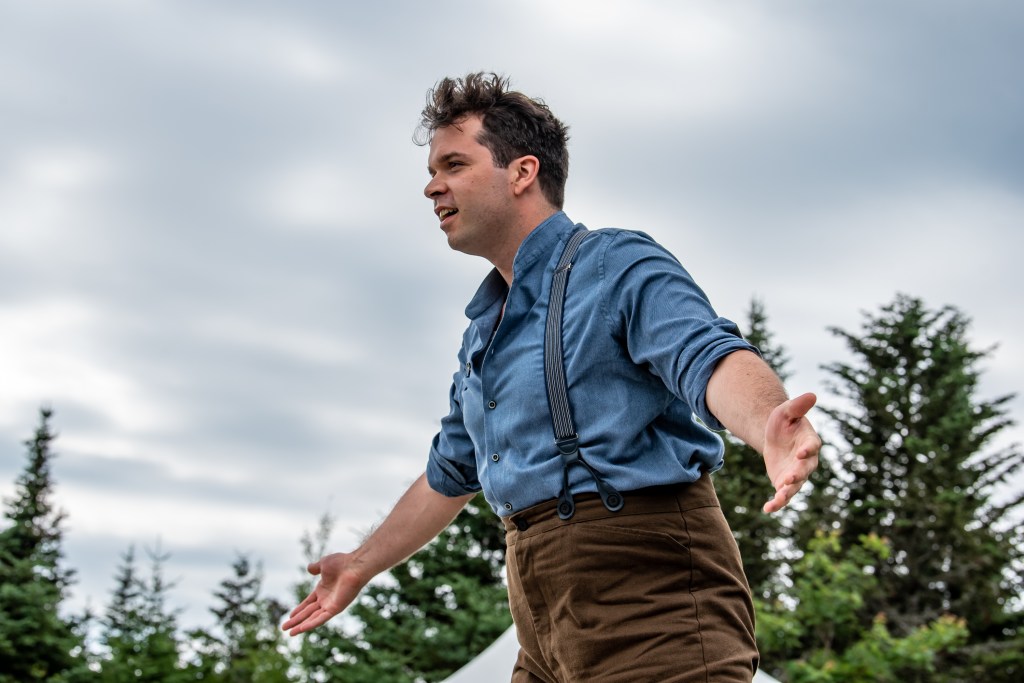 However, even indoors, Kerr’s spooky play about the Spanish Flu cast its spell. The words and very fine acting swirl in your imagination to transport you to a different time and place but a time and place very similar to today in terms of plague, war, fire and fear of apocalypse. (Today the town website for Unity, with its population of 2573, is full of COVID-19 rules.)