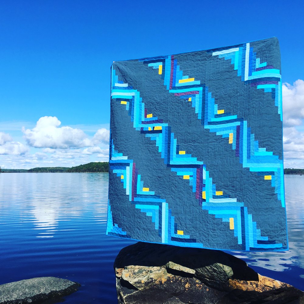 Smulders works in largely traditional patterns with some slight abstractions and pictorial elements. She honours the beauty inherent in traditional patterns and expresses her feelings about Nova Scotia landscape in exquisite, bold, colour choices.
