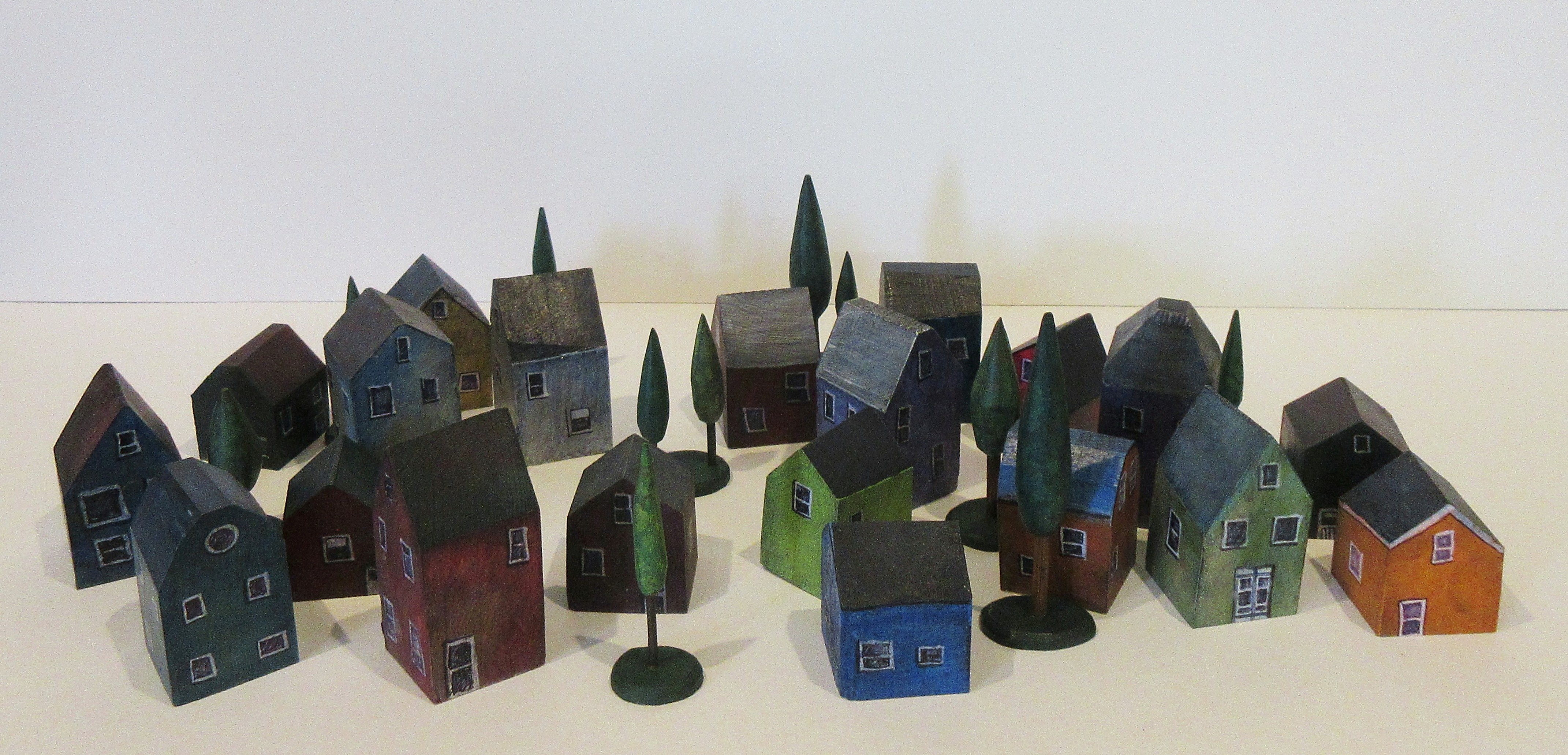 Gilson has a darker more fantastical edge than Kenney. His is the world of making what’s needed from what’s at hand, from digging in the tool box and roaming in the wood shed or the attics of old houses. He builds an enchanting world rooted in story and informed by clowns, carnivals, architecture and toys.