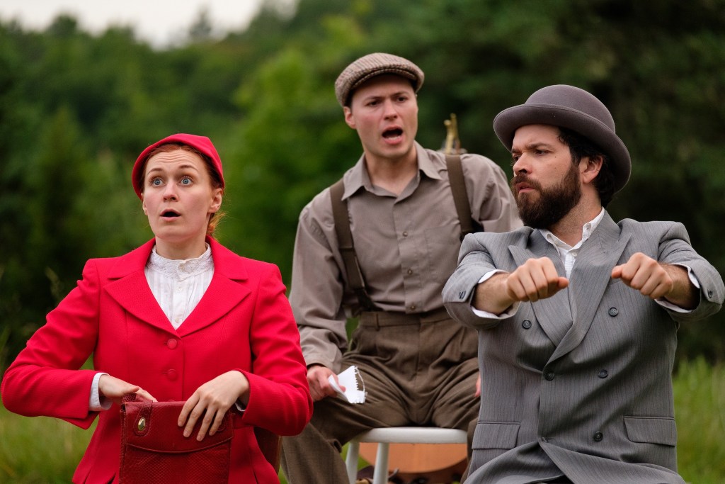 Becca Guilderson as a city dweller on a Valley tourist trip, Sam Vigneault as David Canaan leaving home and Henricus Gielis in The Mountain and the Valley. (Memo Caledrón)