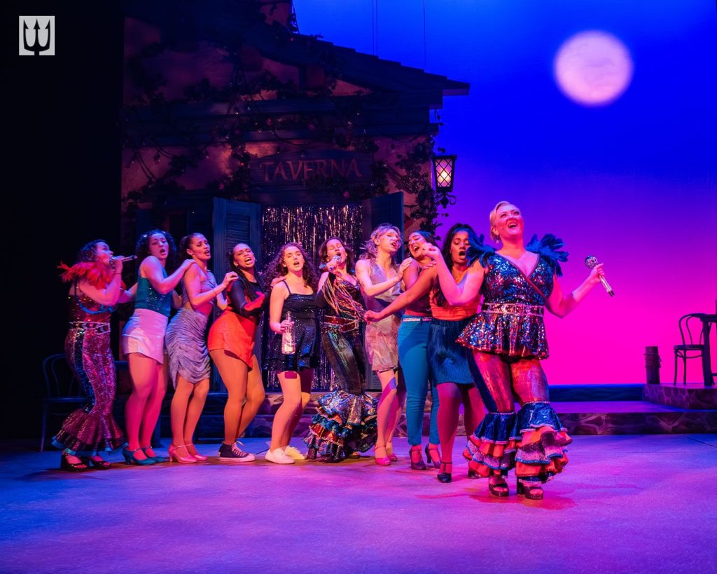 Most of all the music honours the original songs with a rocking live band beneath the stage. Julie Martell, who was Donna in Neptune’s 2018 production, has a voice like a cascading waterfall – natural and effortless – and she’s an excellent song crafter, getting emotional truth into the familiar words and tunes. Martell’s Donna ranges from worried and mature to having pure fun.